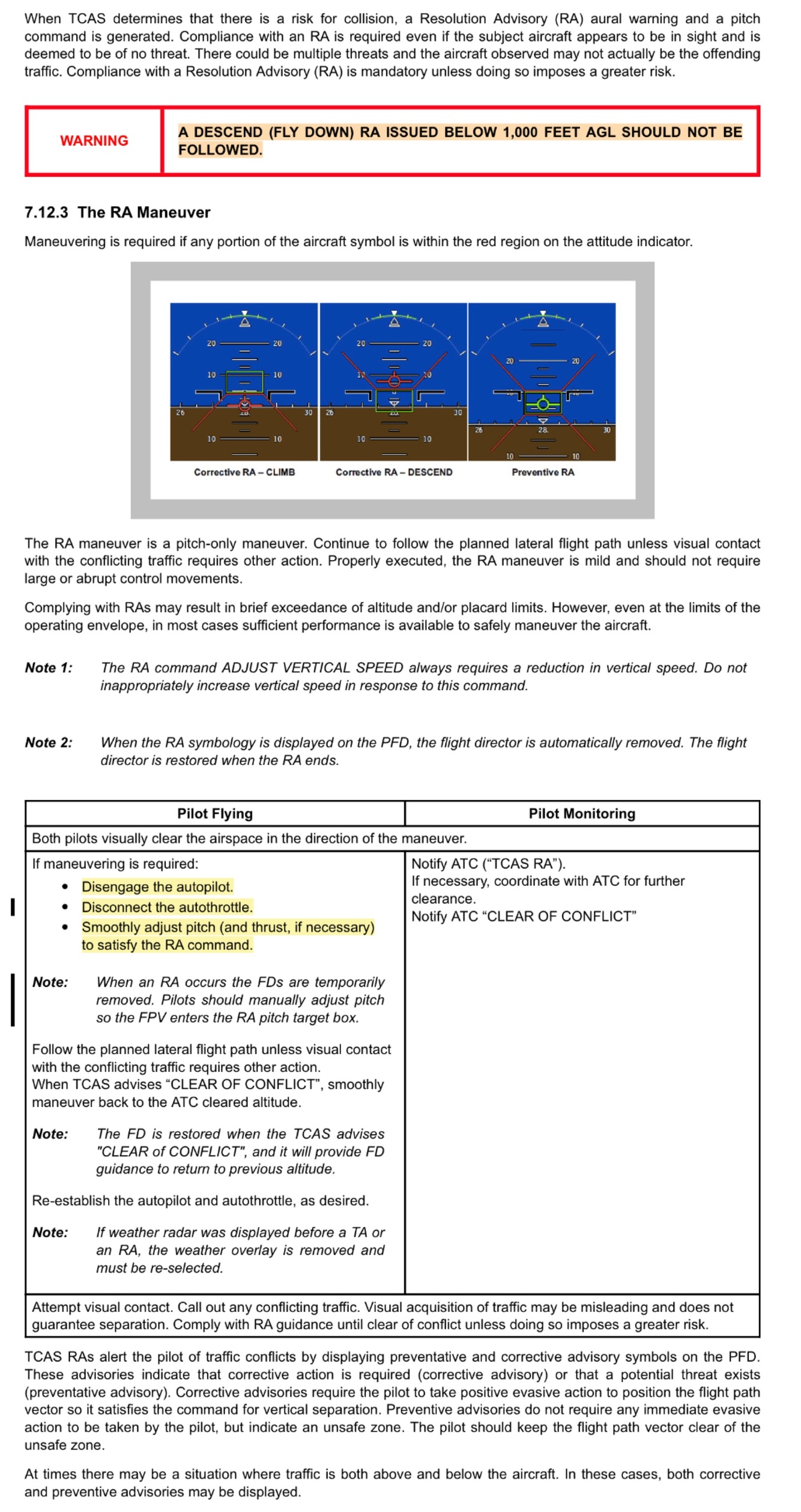“PULL UP” GPWS Terrain Avoidance Maneuver