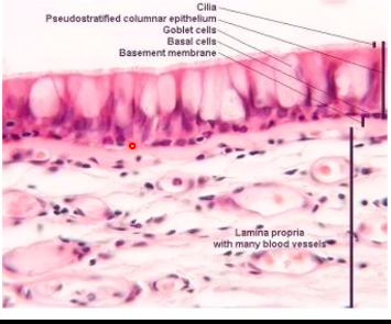 - ciliated, pseudostratified columnar epithelium