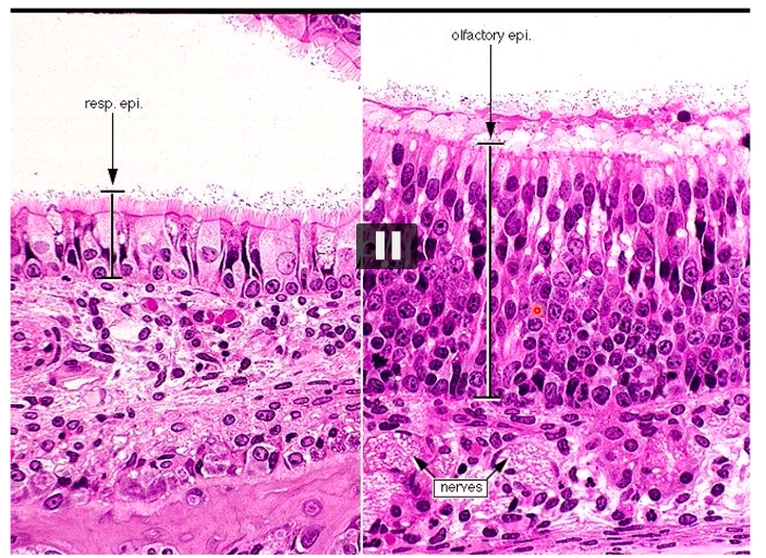 olfactory epithelium has pseudostrat thicker (but still not stratified)!!