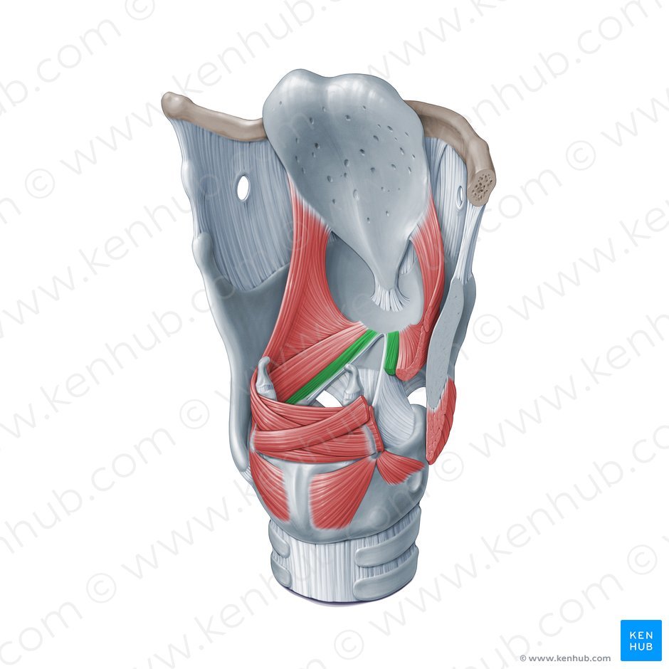vocalis: reduces tension on the vocal cords, reducing pitch of voice