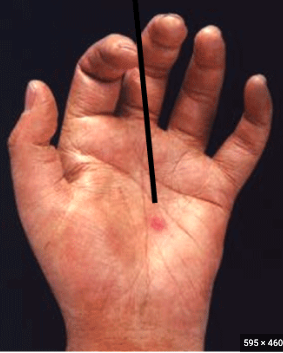 Janeway lesion transient, nontender macular papules on palms or soles. NOT PAINFUL