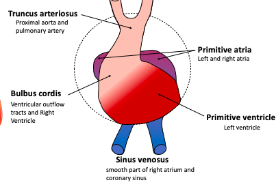 Truncus ateriosus Bulbus cordis Sinus venosus Primitive ventricle Primitive atria