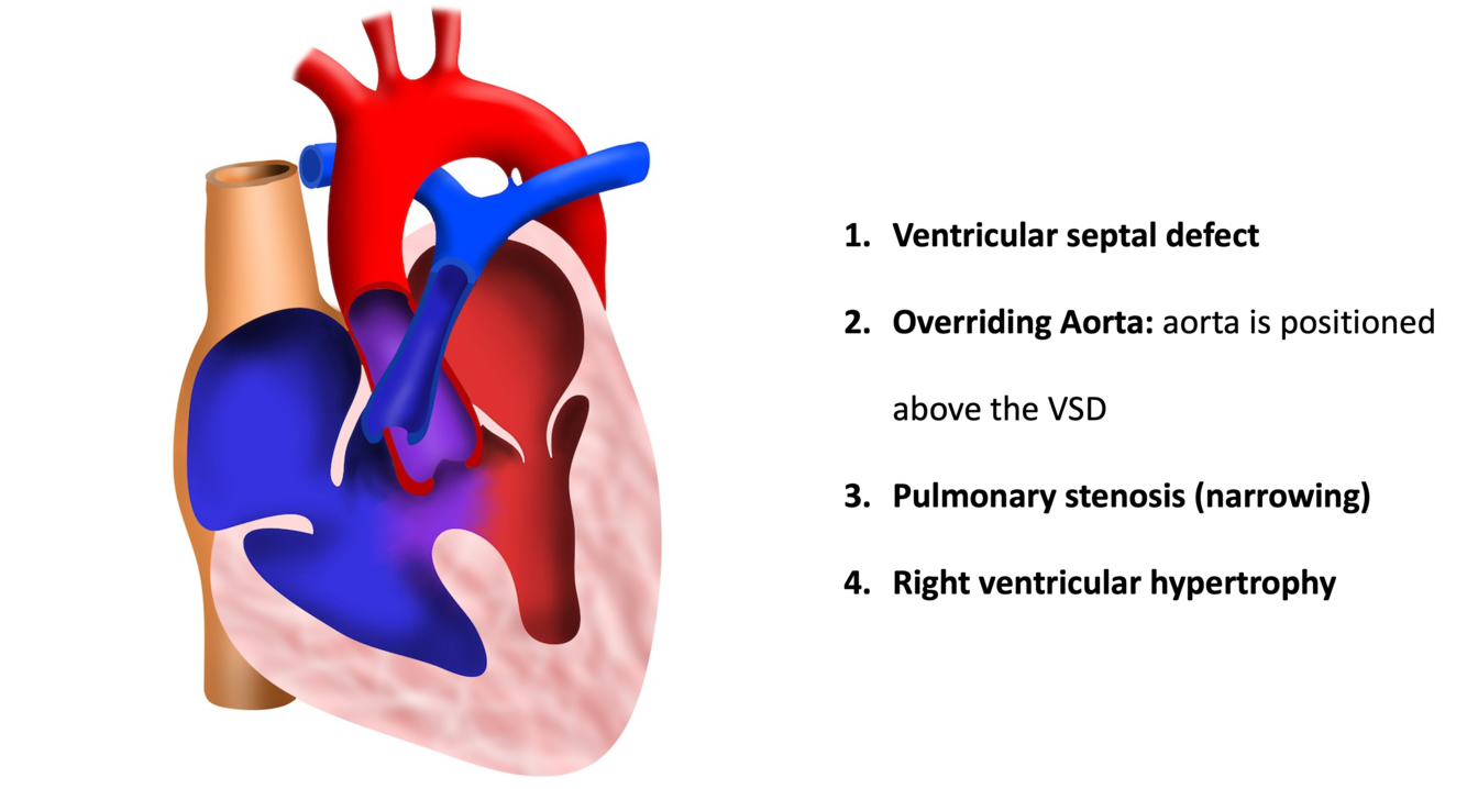 Tetralogy of Fallot is comprimised of which 4 heart defects/