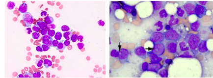 BMS: increased granulocyte precursors, basophils, eosinophils and occasionally monocytes