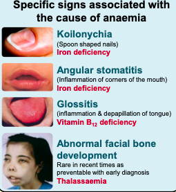 What are specific signs associated with anaemia of thelessasmia? [1]