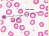 The proerythroblast develops into an (early) erythroblast. The erythroblast then undergoes a sequence of changes where its nucleus progressively shrinks and its cytoplasm becomes filled with haemoglobin (not stained). When full of haemoglobin it is called a normoblast. The normoblast then expels its nucleus and becomes a reticulocyte. Most reticulocytes stay in the marrow and mature into erythrocytes but some may be released into the blood, especially after haemorrhage. Reticulocytes can transport oxygen, just not as efficiently as mature erythrocytes. They can mature into adult RBCs in the circulation