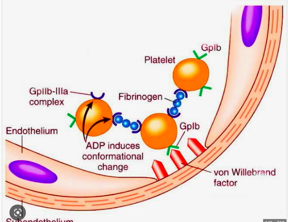 glycoprotein IIb/IIIa (GPIIb/IIIa) an integrin complex found on platelets. It is a receptor for fibrinogen[1] and von Willebrand factor and aids platelet activation. The complex is formed via calcium-dependent association of gpIIb and gpIIIa, a required step in normal platelet aggregation and endothelial adherence