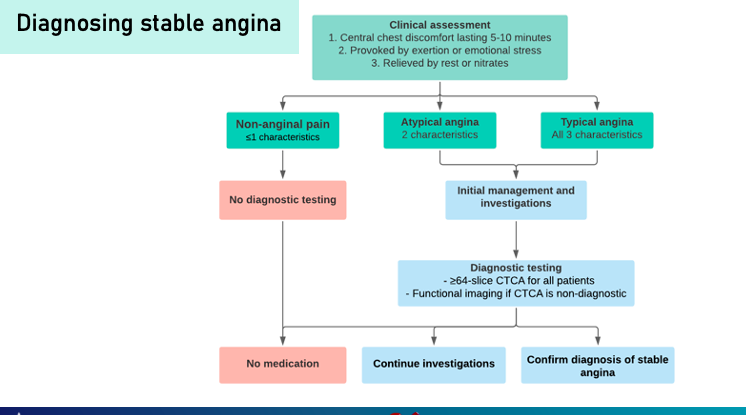 Describe the pathway you would undertake to diagnose stable angina