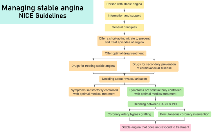 Describe the managment pathway for someone with angina