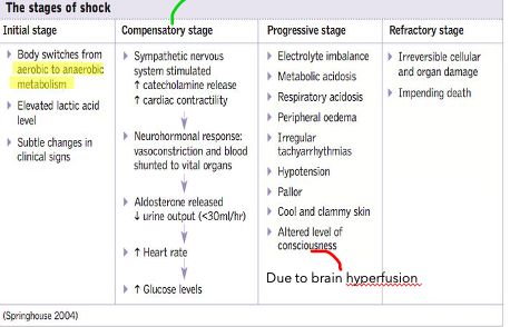 Name and describe the 4 stages of shock