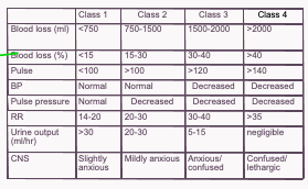 Describe the 4 classes of haemorrhagic shock