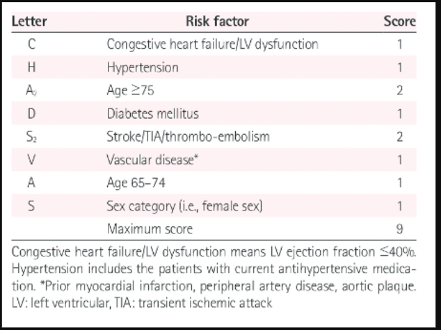 What does CHA2DS2-VASc stand for?
