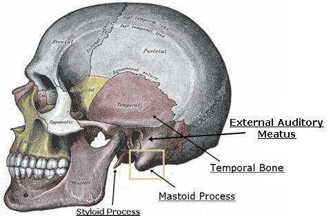 Mandibular Fossa, External Acoustic Meatus, Styloid Process, Mastoid Process Jugular Foramen