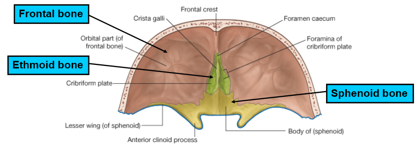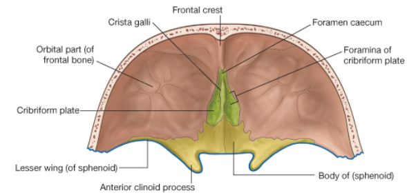 Foramina of Anterior Cranial Fossa and what structures pass through them