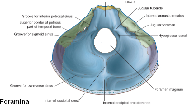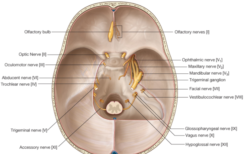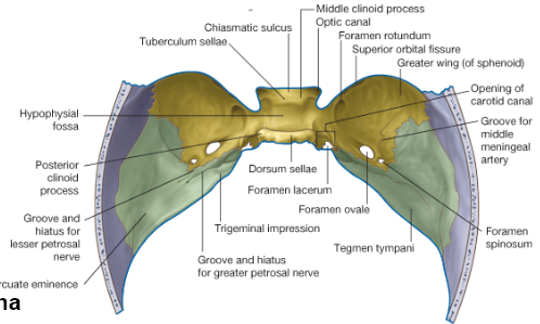 Foramina of Middle Cranial Fossa and what structures pass through them