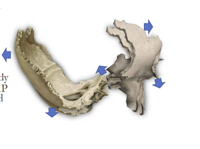 base moves anteroinferior and apex moves posterior