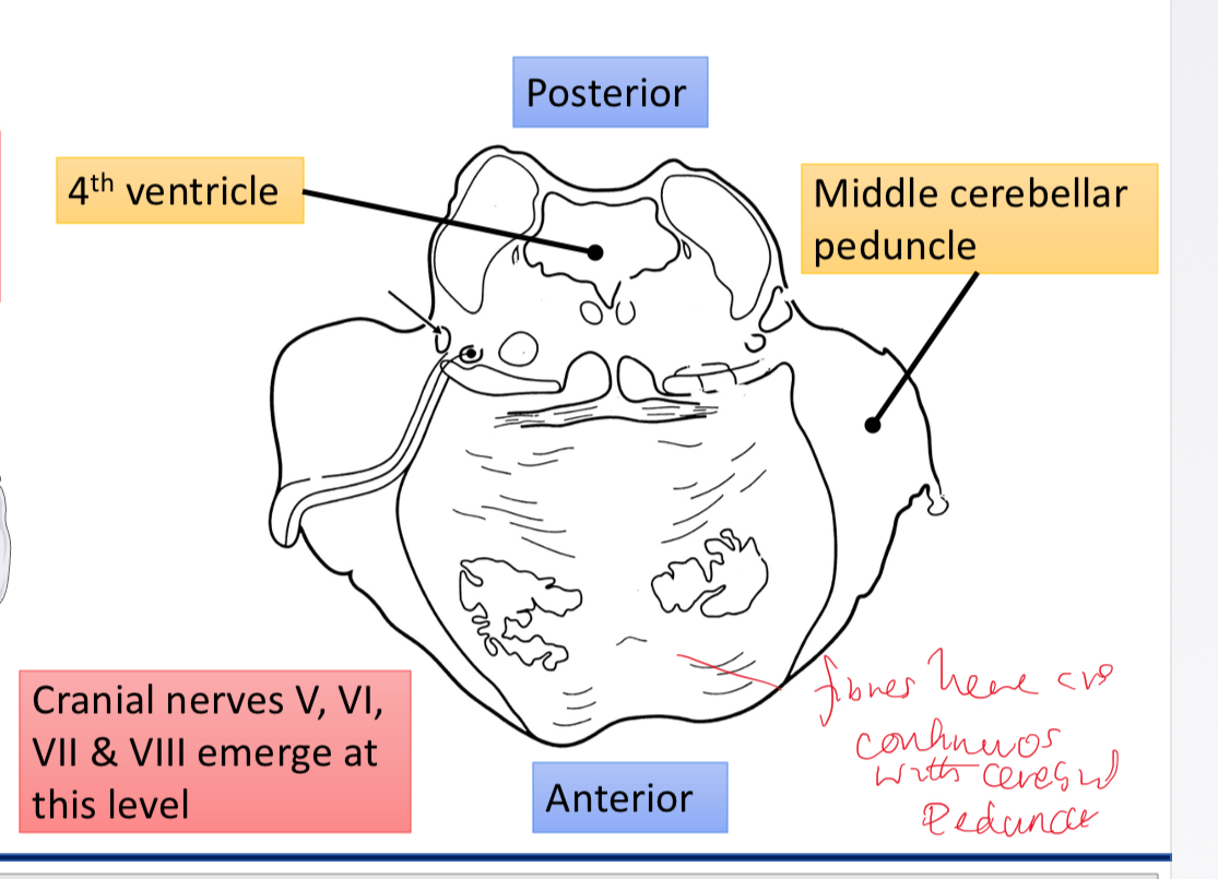 Cerebellar peduncles- 3 Superior, middle and inferior