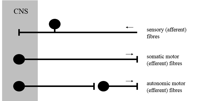 Are the cell bodies of sensory (afferent) fibres inside or outside of the CNS?