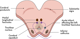 Small bundles of fibres curve around the periaqueductal grey matter with a caudal slope and decussate in the superior medullary velum.