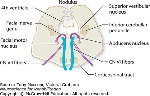 Gives rise to axons that pass through the pons in a ventrocaudal direction, emerging from the brainstem at the junction of the pons and the pyramid.