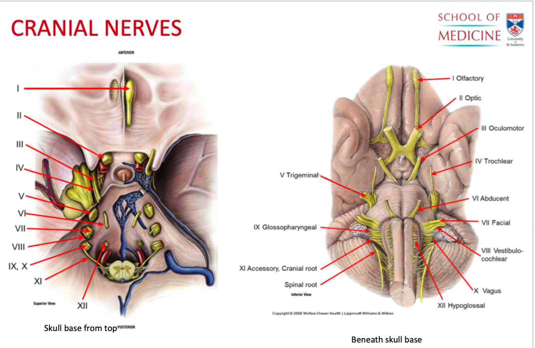 Where are the different cranial nerves located ?