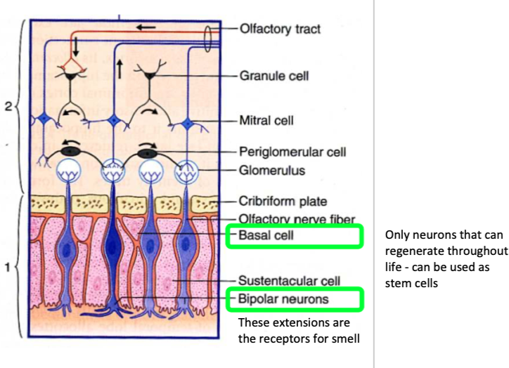 Basal cells can differentiate to bipolar (olfactory) neurons - regeneration in adult human