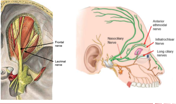 - Divides into supra-orbital and supra-trochlear nerves
