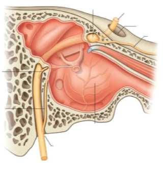 Olfactory region - upper 1/3rd of the nasal cavity (superior nasal concha, roof of nasal cavity and nasal septum)