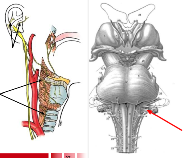 Motor nucleus is Nuc. ambiguus, sensory nucleus is Nuc. Solitarius