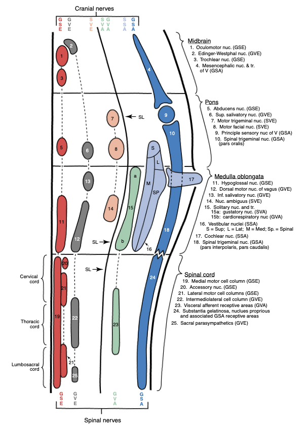 How can the location of cranial nerve nuclei within the brainstem be predicted?