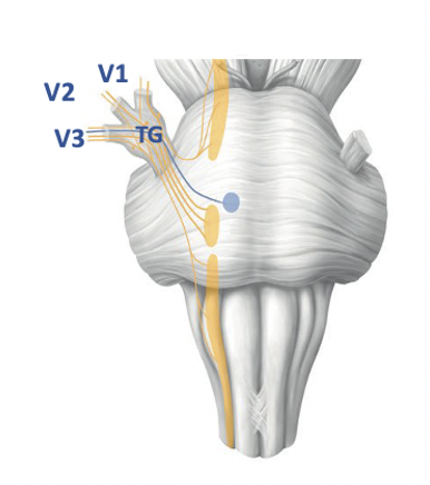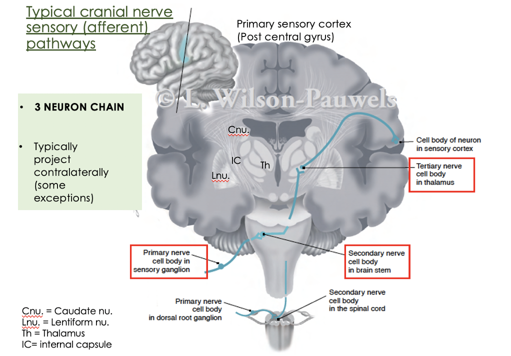 What is the typical 3 neurone chain involved in a CN sensory (afferent) pathway?