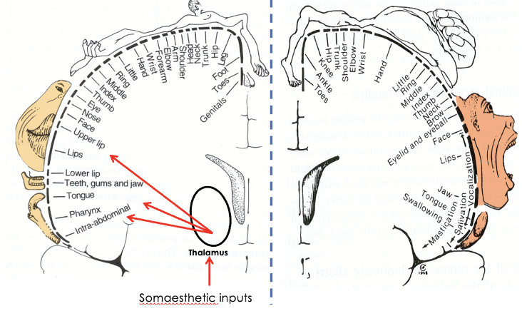 the face is represented more laterally, followed by the arm, trunk and then legs most medially