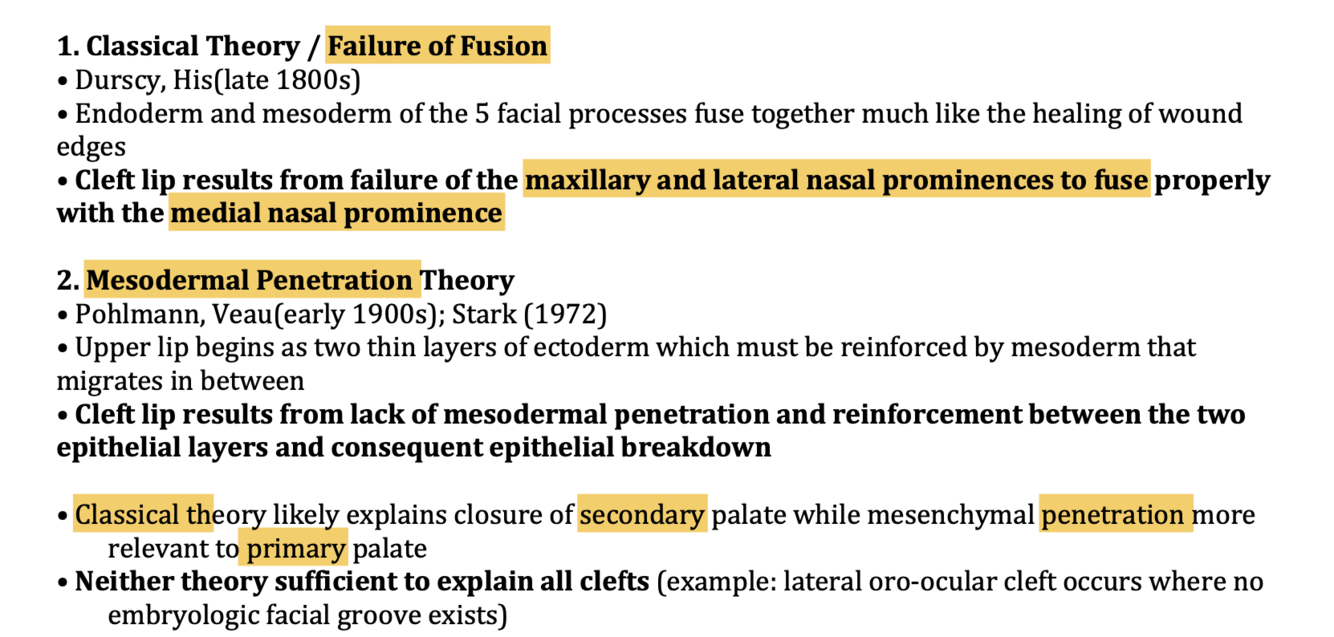 What are the theories of cleft lip?
