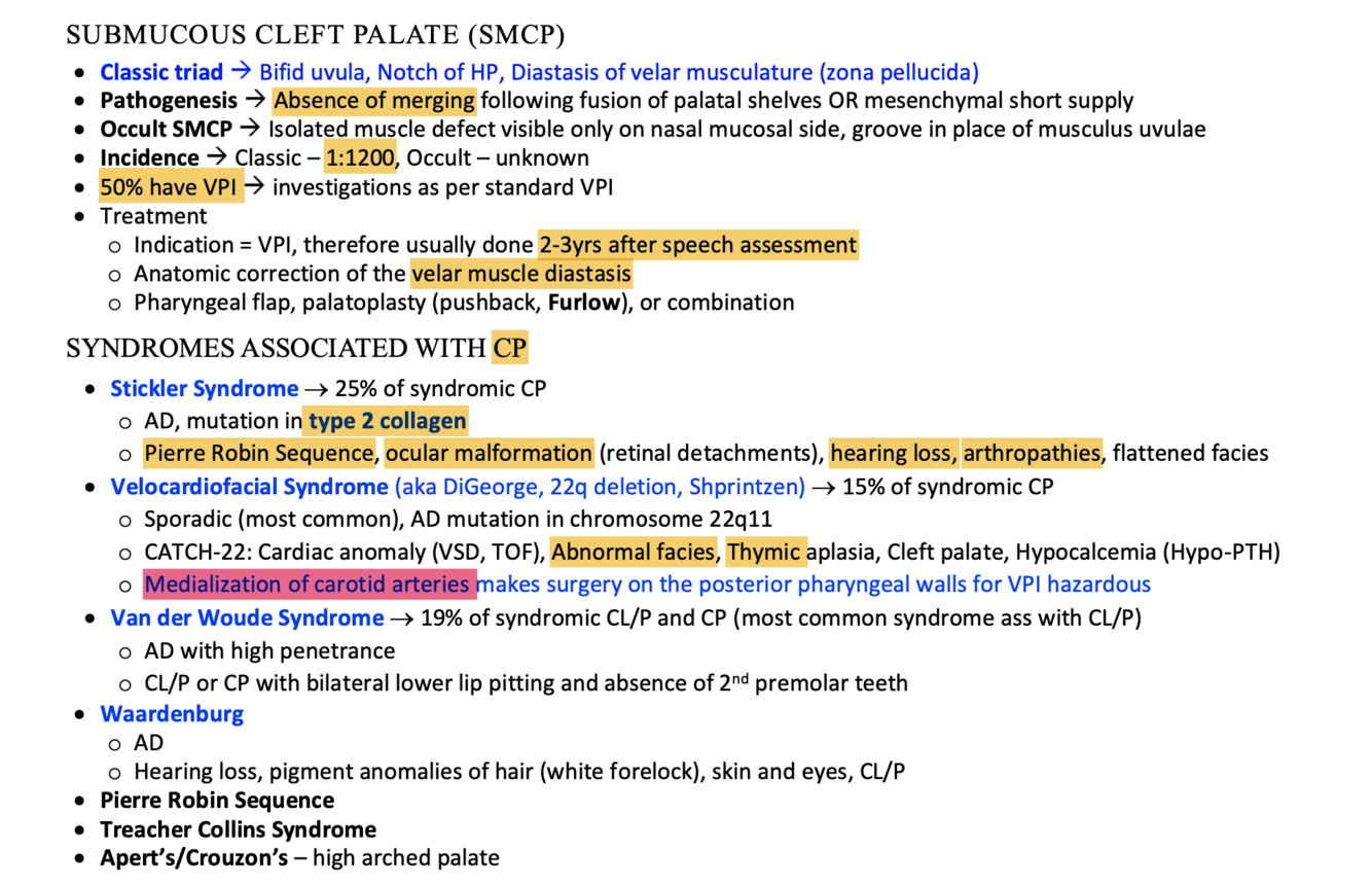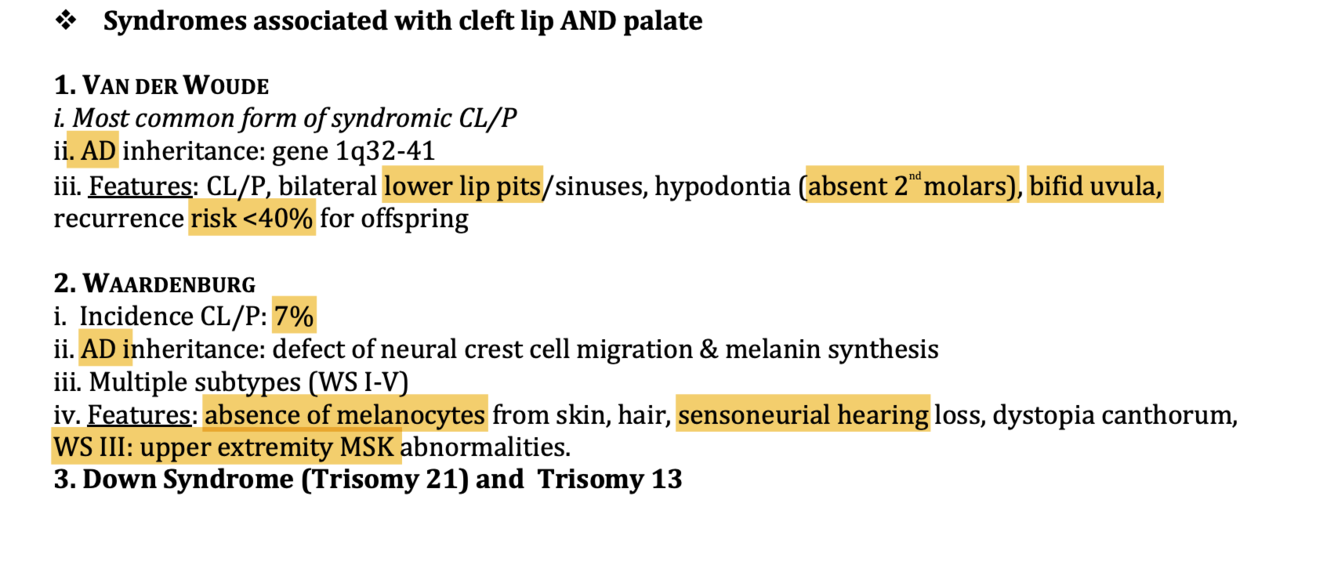 What syndromes are associated with cleft palate?