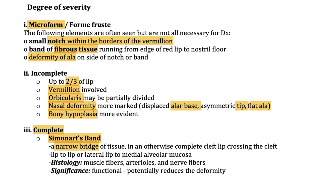 What is the degree of severity of the cleft?