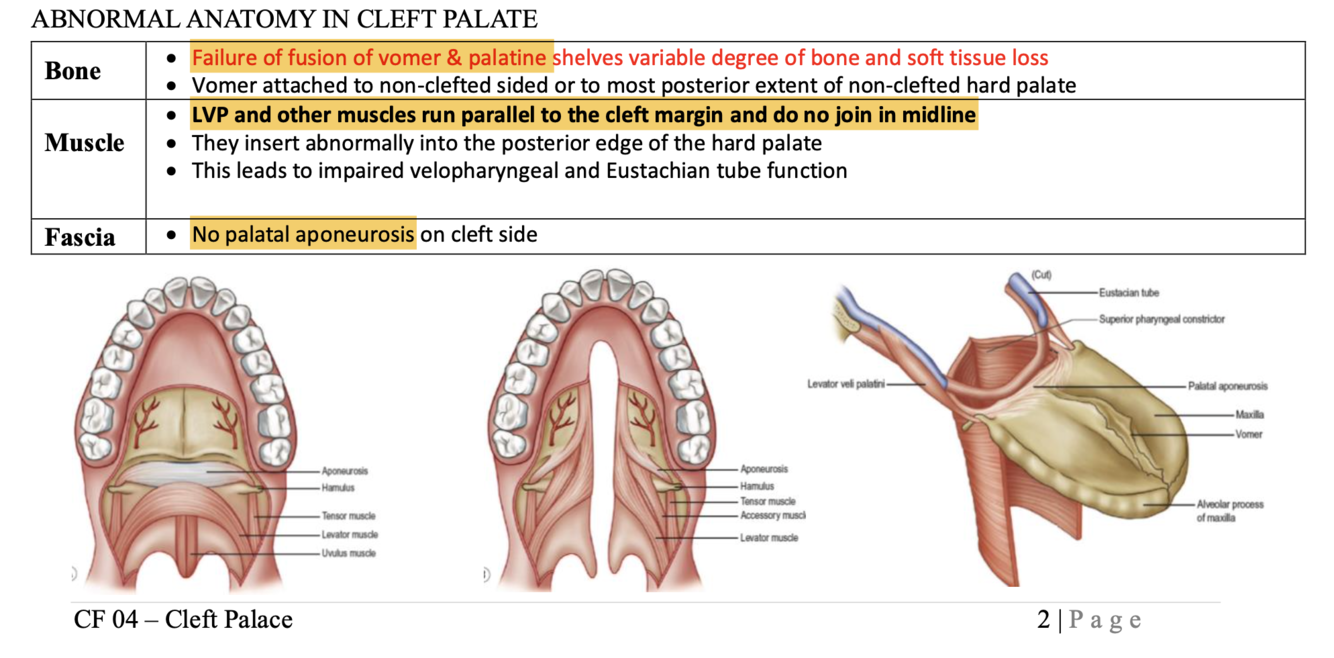 How is the anatomy different in cleft palate?