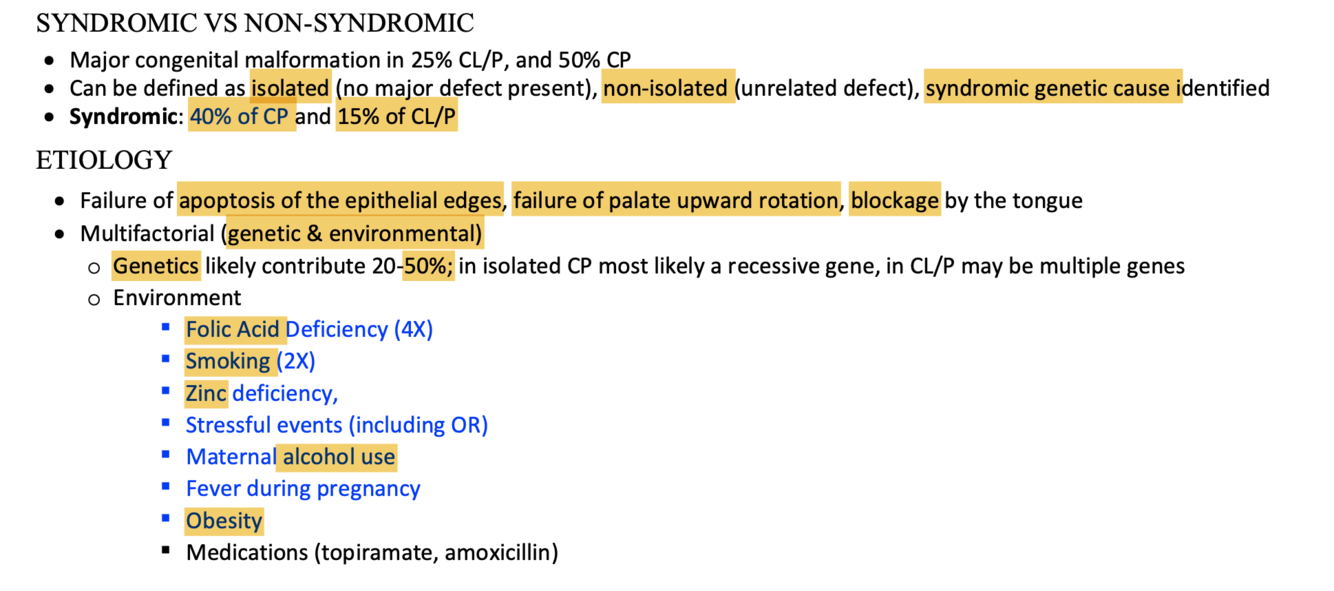 What are environmental risk factors for cleft palate?