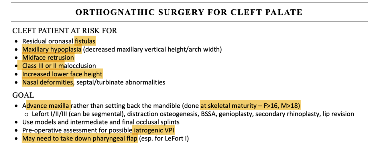 What orthonathic problems can cleft palate patients develop?