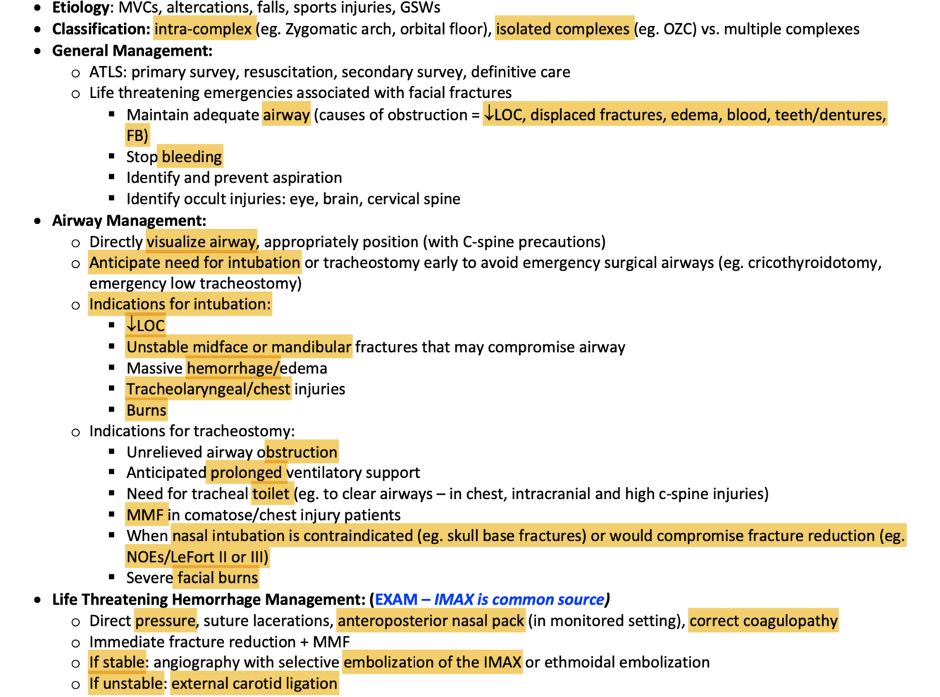 What are indications for intubation, trach?