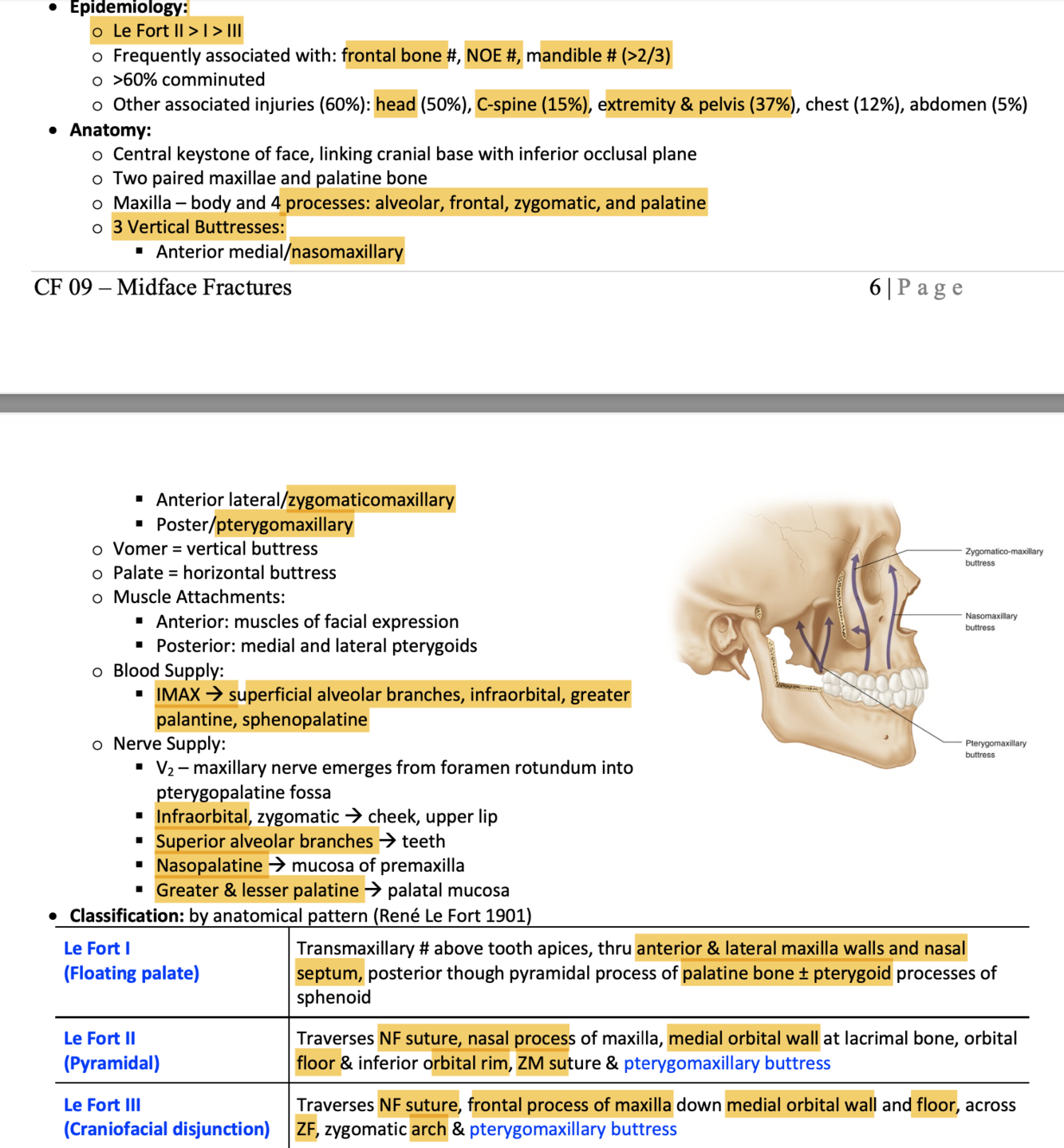 Describe Le Fort I, II, III.