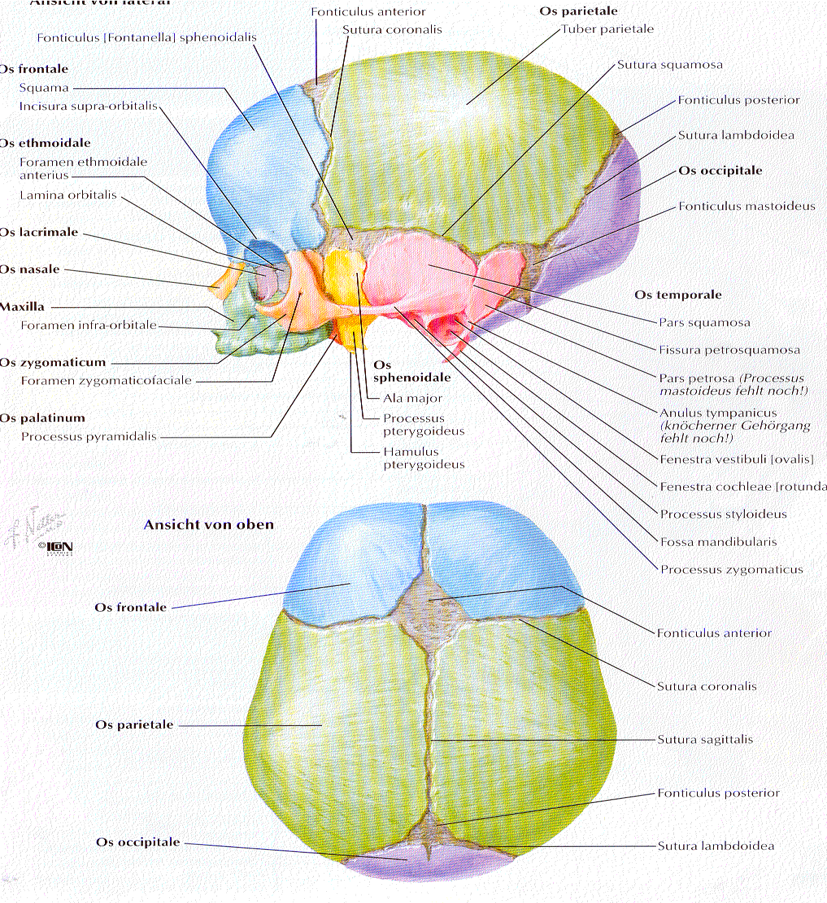 Benævn de 3 suturer der er i craniet og beskriv hvorledes de forløber