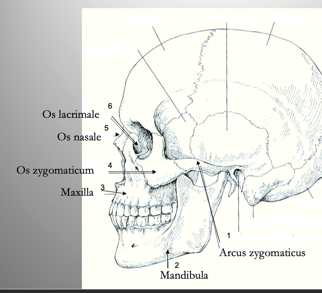 Nævn ansigtets knogler på latin (parrede og uparrede) (facies)