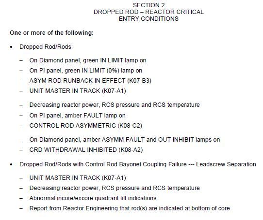 What are entry conditions for dropped rod - reactor critical?