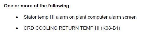2) Greater than 6.5% asymmetry and asymm fault and out inhibit on diamond panel and CRD withdrawal inhibited annunciator