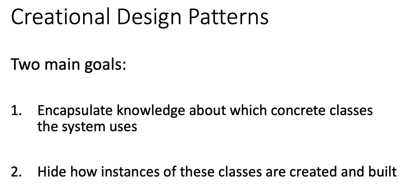 What are the two main goals of creational design patterns?