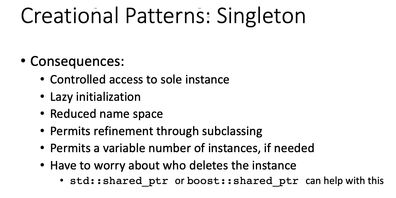 What are the consequences of using the singleton design pattern?
