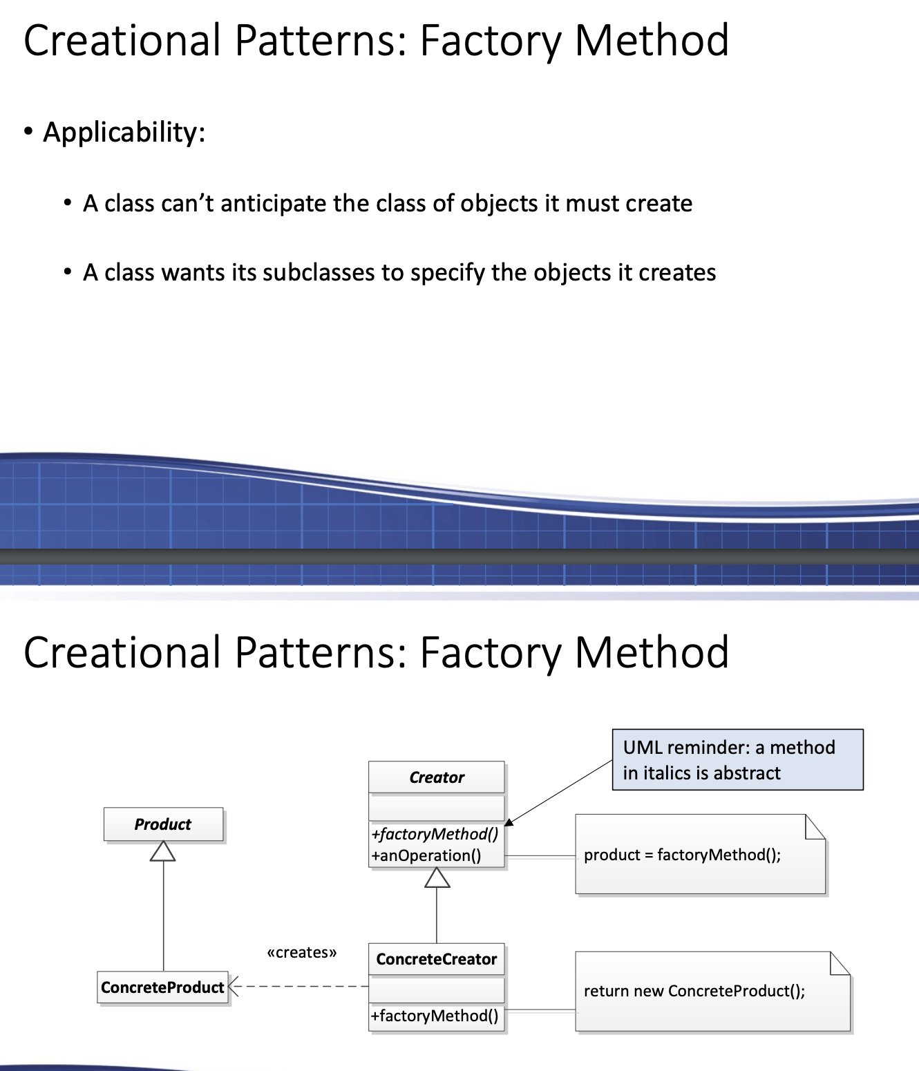 What is the Factory Method creational design pattern?