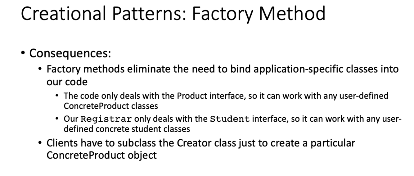 What are the consequences of using the factory method creational design pattern?