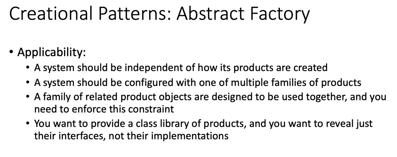 what is the applicability of the abstract factory creational design pattern?