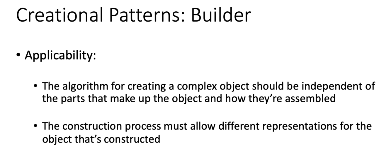 What is the applicability of the builder creational design pattern?